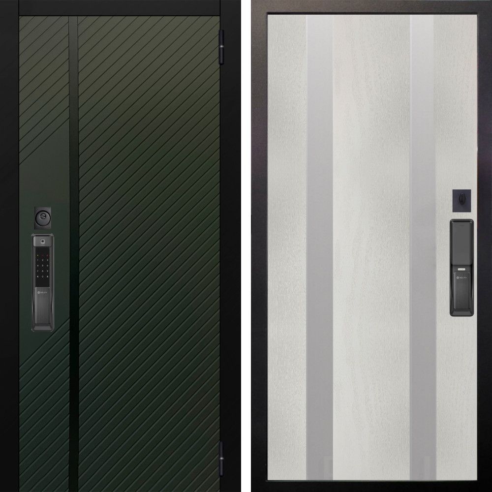 Входная дверь Аргус SMART ланцет олива софт + Дуэт Белое дерево вставки Изабель
