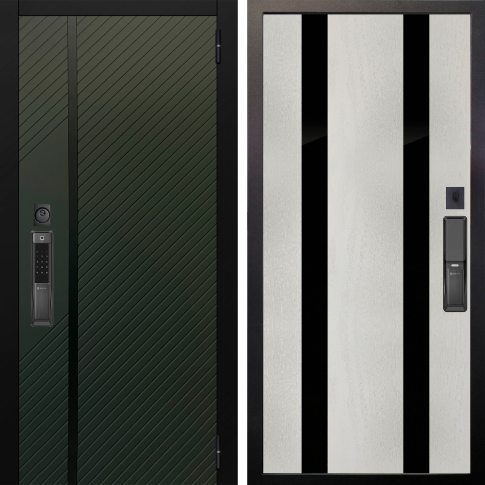 Входная дверь Аргус SMART ланцет олива софт + Дуэт Белое дерево вставки Кензо