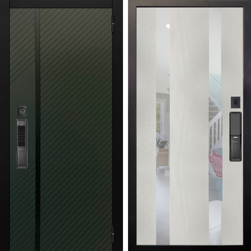 Входная дверь Аргус SMART ланцет олива софт + Дуэт Белое дерево вставки Николь