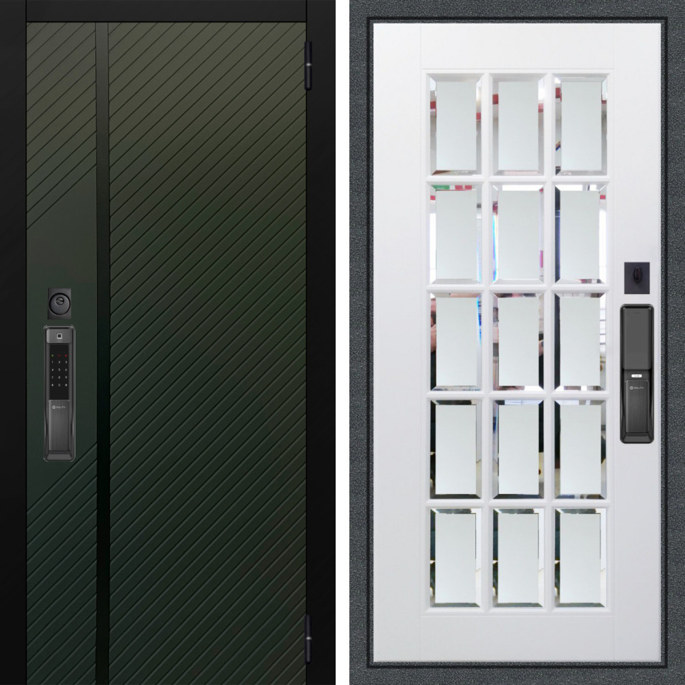 Входная дверь Аргус SMART ланцет олива софт + Мэрелин Софт милк зеркало с фацетом и пескоструем