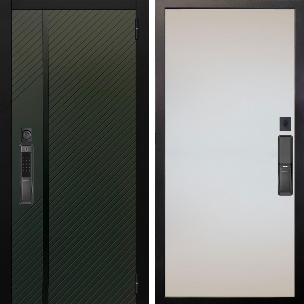 Входная дверь Вертика с внутренней отделкой Эверест нерж белый матовый • Габаритные размеры: 2050x860 мм, 2050x960 мм • Металл 1.8мм • Внешнее покрытие: МДФ 16 мм белый мат с молдингом черная лакобель • Толщина полотна: 115 мм. • Толщина коробки: 120 мм. • Короб закрытого типа, утепленный • Уплотнитель: 3 контура • Два вертикальных ребра жесткости • Замок основной: Гардиан 6211 с блокировкой язычка • Замок дополнительный: Гардиан 6001 • Врезная броненакладка • Пазы на коробке под доборы • Независимая задвижка есть • Фурнитура Черная