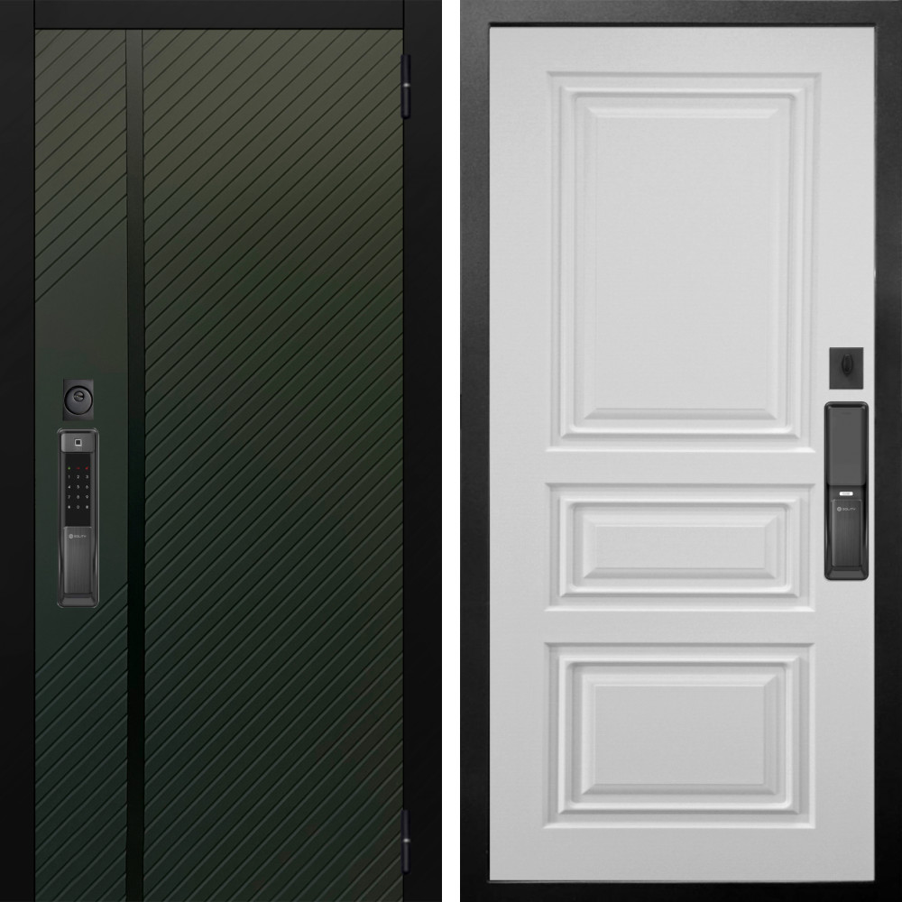 Входная дверь Агат SMART с внутренней отделкой Классика белый матовый • Габаритные размеры: 2050x860 мм, 2050x960 мм • Металл 1.8мм. Черная шагрень • Внешнее покрытие: МДФ 12 мм. • Толщина полотна: 115 мм. • Толщина коробки: 120 мм. • Короб закрытого типа, утепленный • Уплотнитель: 3 контура • Два вертикальных ребра жесткости • ЭЛЕКТРОННЫЙ ЗАМОК НА ВЫБОР • Замок дополнительный: Гардиан 6001 • Врезная броненакладка • Пазы на коробке под доборы • Независимая задвижка есть • Фурнитура ЧЕРНАЯ