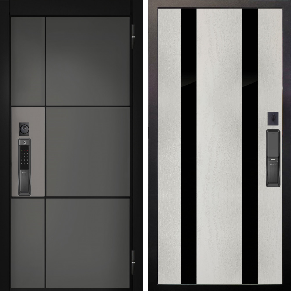 Входная дверь Шторм Графит SMART с внутренней отделкой ФЛ-39 эко дуб • Габаритные размеры: 2050x860 мм, 2050x960 мм • Металл 1.8мм. Черная шагрень • Внешнее покрытие: МДФ 12 мм. • Толщина полотна: 115 мм. • Толщина коробки: 120 мм. • Короб закрытого типа, утепленный • Уплотнитель: 3 контура • Два вертикальных ребра жесткости • ЭЛЕКТРОННЫЙ ЗАМОК НА ВЫБОР • Замок дополнительный: Гардиан 6001 • Врезная броненакладка • Пазы на коробке под доборы • Независимая задвижка есть • Фурнитура ЧЕРНАЯ