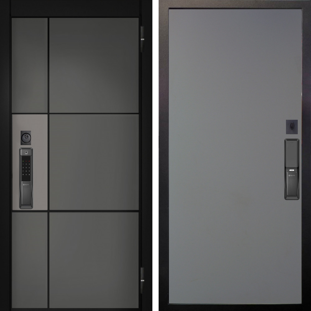 Входная дверь Афина Графит SMART с внутренней отделкой Вертикаль белый матовый • Габаритные размеры: 2050x860 мм, 2050x960 мм • Металл 1.8мм. Черная шагрень • Внешнее покрытие: МДФ 12 мм. • Толщина полотна: 115 мм. • Толщина коробки: 120 мм. • Короб закрытого типа, утепленный • Уплотнитель: 3 контура • Два вертикальных ребра жесткости • ЭЛЕКТРОННЫЙ ЗАМОК НА ВЫБОР • Замок дополнительный: Гардиан 6001 • Врезная броненакладка • Пазы на коробке под доборы • Независимая задвижка есть • Фурнитура ЧЕРНАЯ