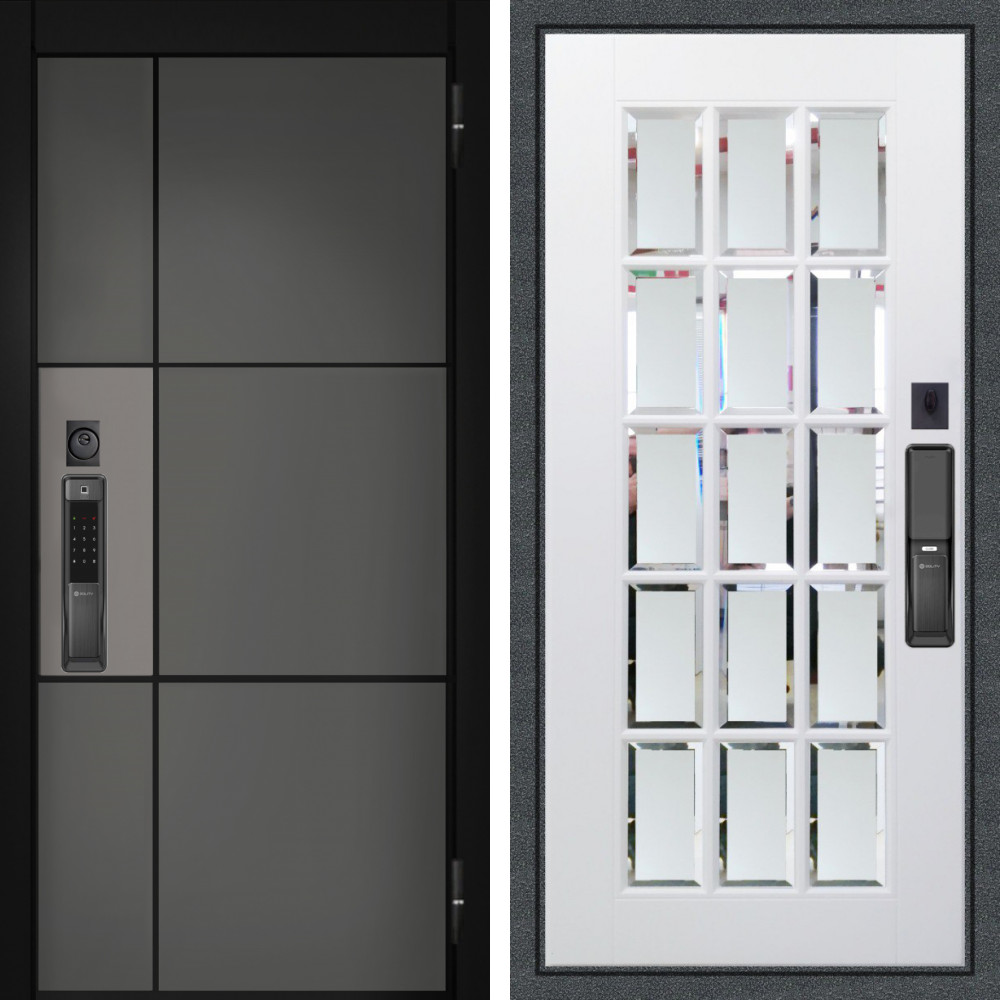 Входная дверь Аргус SMART мичиган силк титан силк муссон + Мэрелин Софт милк зеркало с фацетом и пескоструем