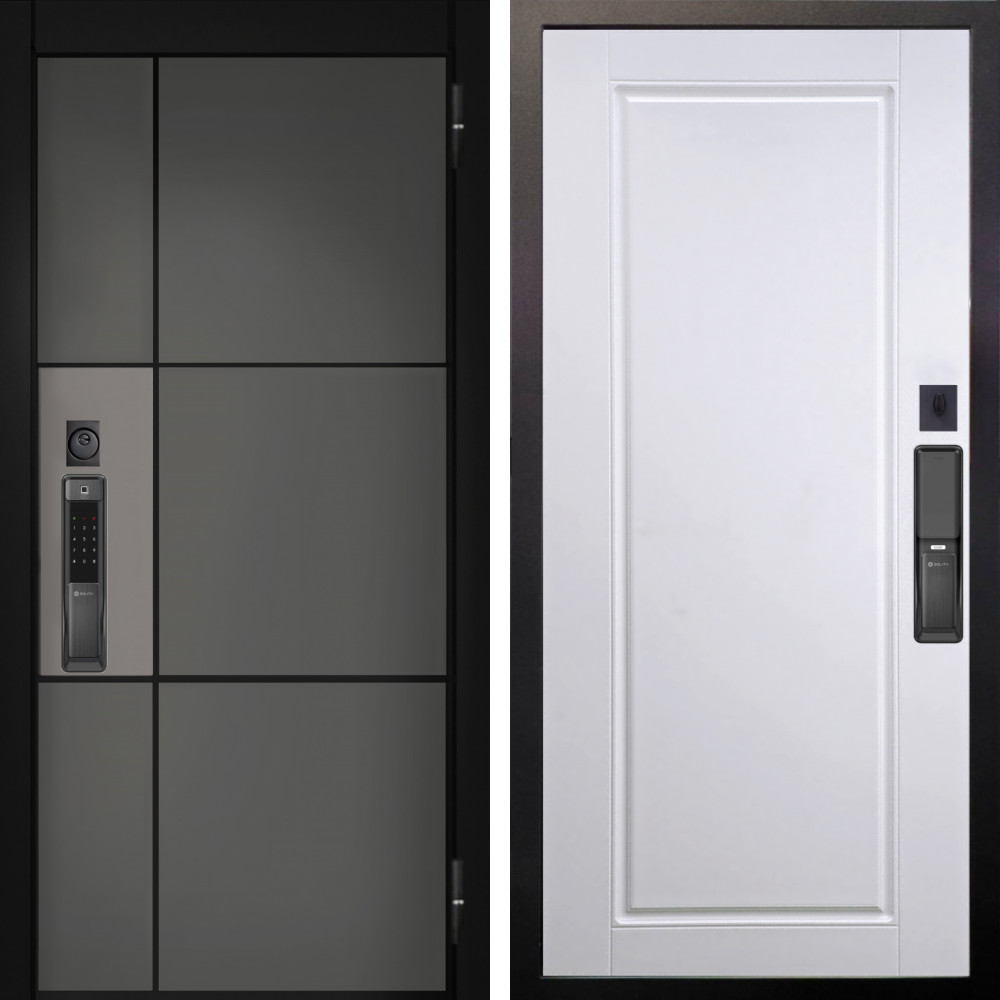 Входная дверь Termo-Door с утеплением: внешняя отделка Смарт Black Line, внутренняя отделка Flat Черный кварц.Толщина полотна 95 мм, цилиндровый замок, доставка и установка в Москве и МО, гарантия 1 год.