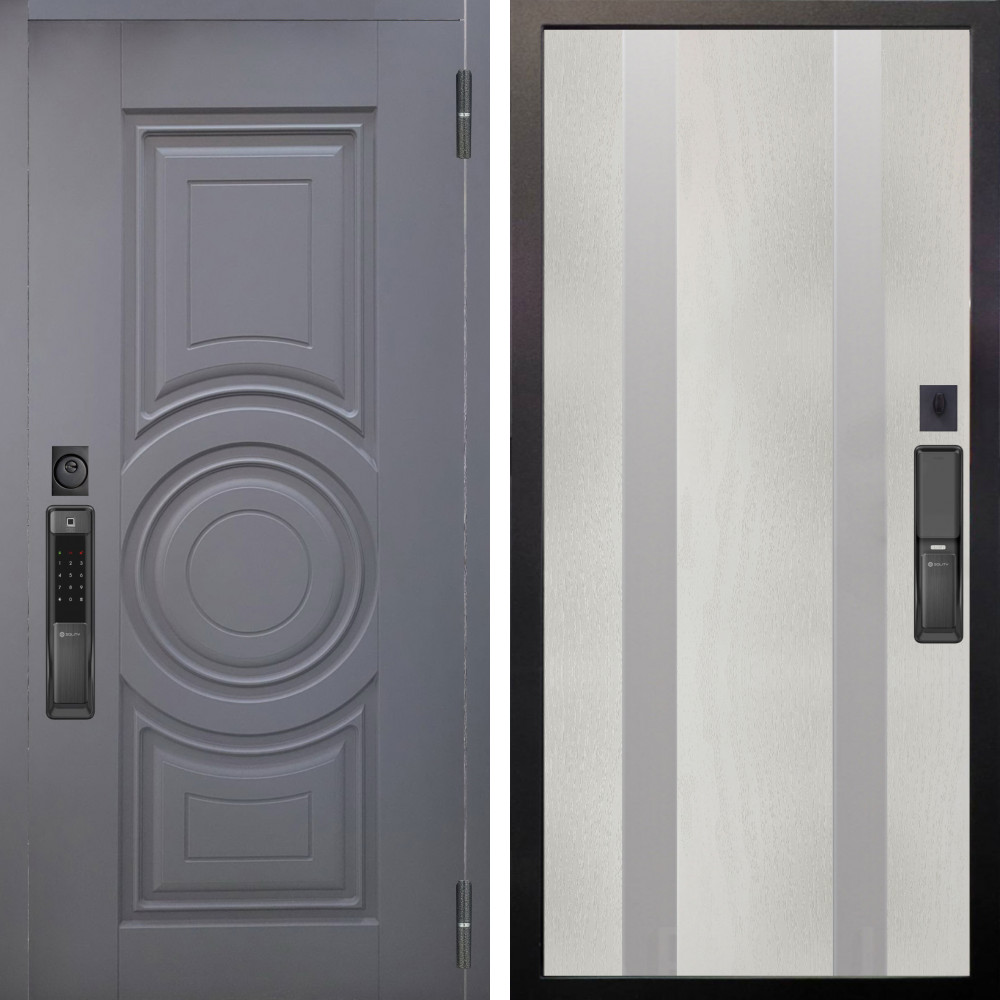 Входная дверь Termo-Door с утеплением: внешняя отделка Граунд Грей, внутренняя отделка Зеркало Триумф Белый софт.Толщина полотна 100 мм., цилиндровый замок, доставка и установка в Москве и МО, гарантия 1 год.