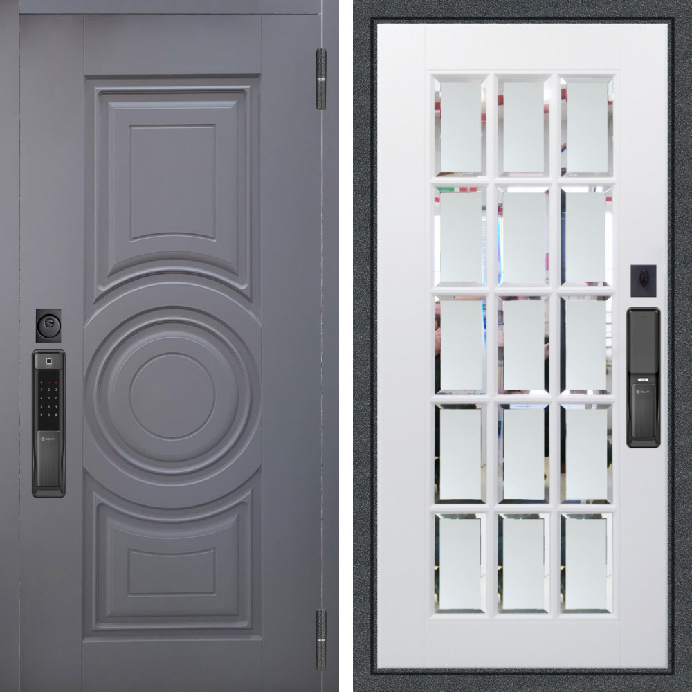 Входная дверь Аргус SMART Могадиш Силк флай + Мэрелин Софт милк зеркало с фацетом и пескоструем