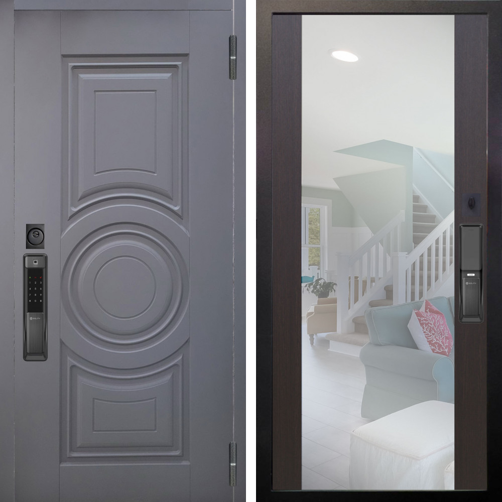 Входная дверь Шторм Графит с внутренней отделкой Зеркало сб-16 белый матовый • Габаритные размеры: 2050x860 мм, 2050x960 мм • Металл 1.5мм. • Внешнее покрытие: МДФ 12 мм. • Цвет покрытия: Графит. • Толщина полотна: 100 мм. • Толщина коробки: 105 мм. • Окрас короба:Черная шагрень. • Короб закрытого типа, утепленный. • Уплотнитель: 3 контура. • Два вертикальных ребра жесткости. • Замок основной: Guardian 3211 (цилиндровый). • Замок дополнительный: Guardian 300 • Врезная броненакладка. • Независимая задвижка есть. • Фурнитура Черная.
