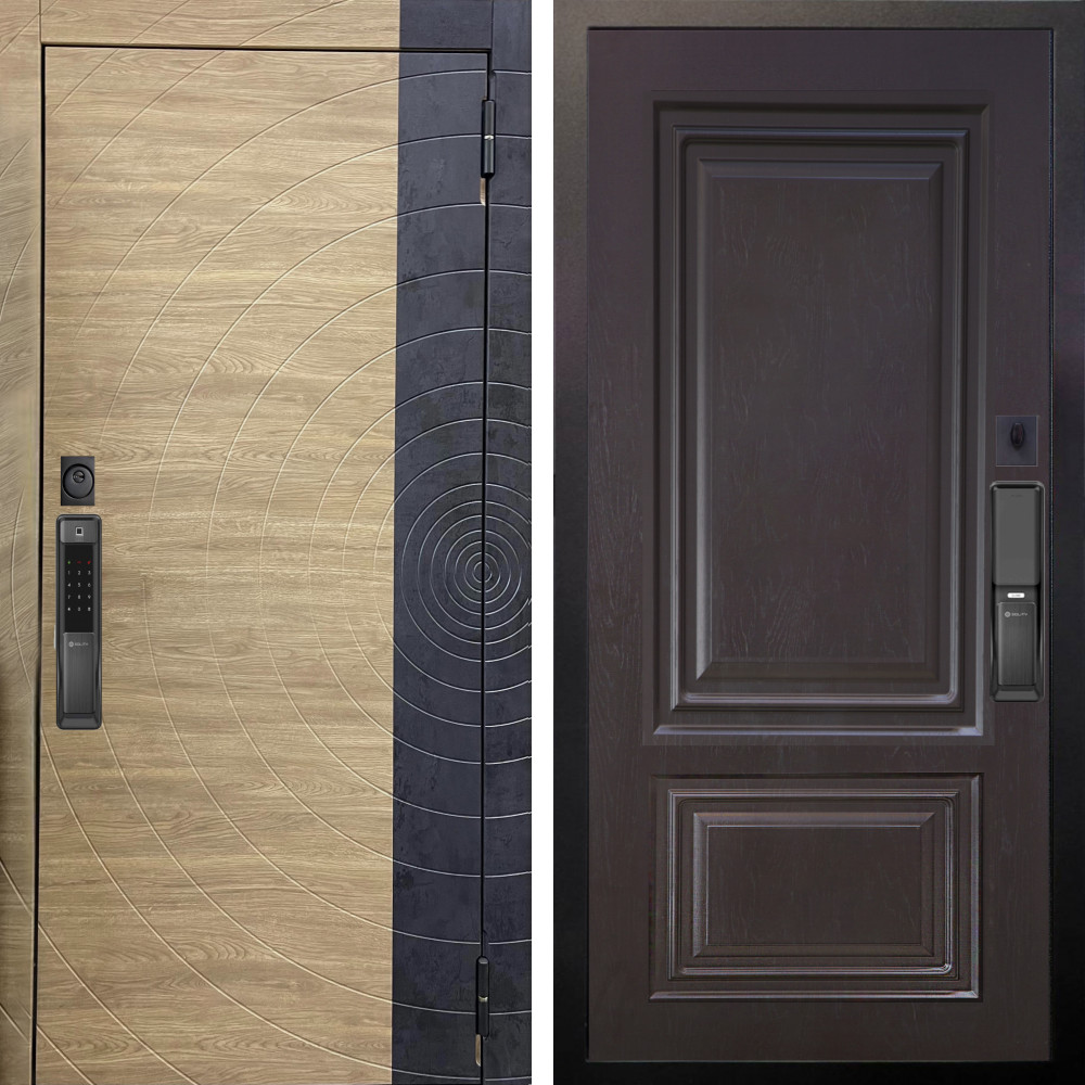 Входная дверь Аргус SMART Раунд Дуб европейский красный горизонт вставка бетон урбан индиго + Элион Горький шоколад