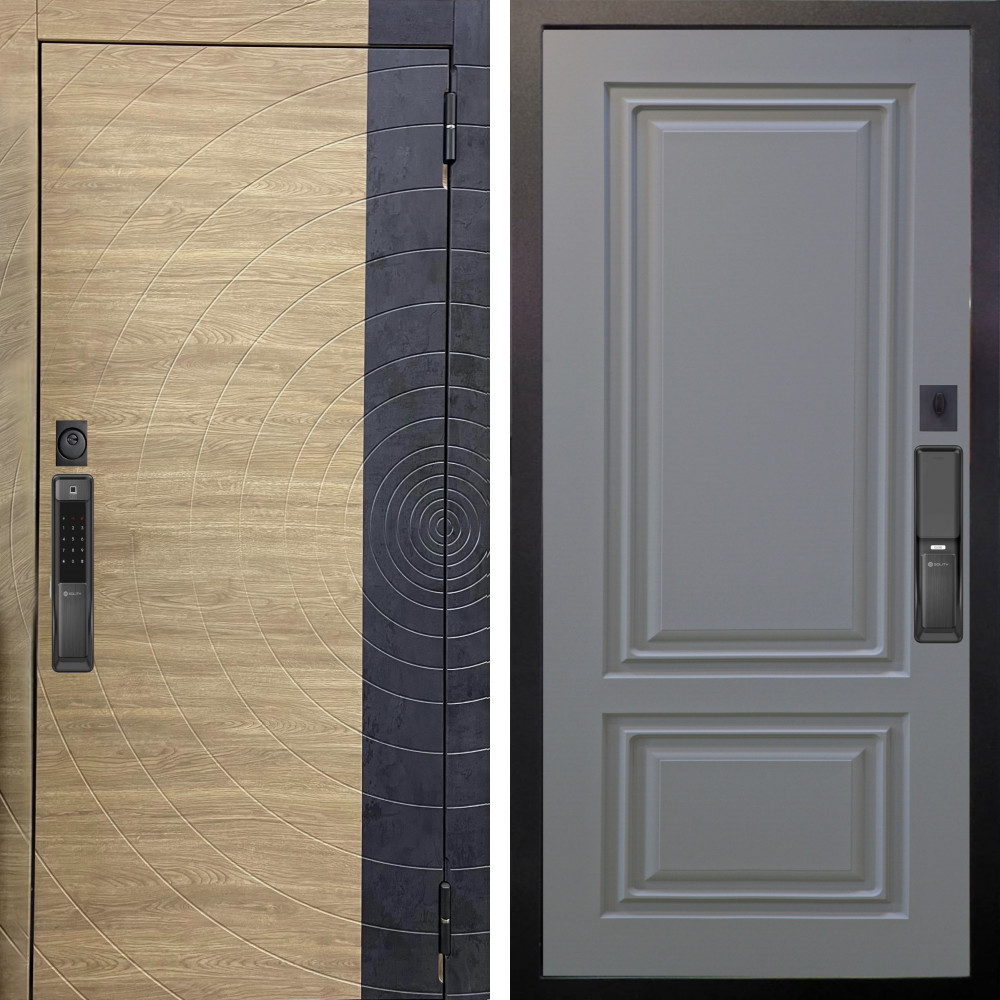 Входная дверь Termo-Door с утеплением: внешняя отделка Премиум Дуб, внутренняя отделка Flat Grey софт.Толщина полотна 100 мм., цилиндровый замок, доставка и установка в Москве и МО, гарантия 1 год.