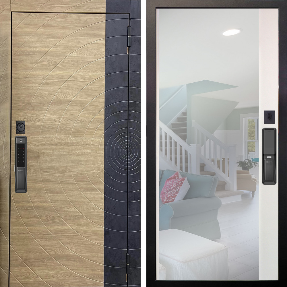 Входная дверь Termo-Door с утеплением: внешняя отделка Плэй, внутренняя отделка Зеркало Фацет Черный кварц+тонировка серая.Толщина полотна 100 мм., цилиндровый замок, доставка и установка в Москве и МО, гарантия 1 год.
