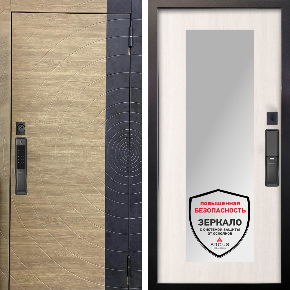 Входная дверь Аргус SMART Раунд Дуб европейский красный горизонт вставка бетон урбан индиго + Милли Ларче светлый