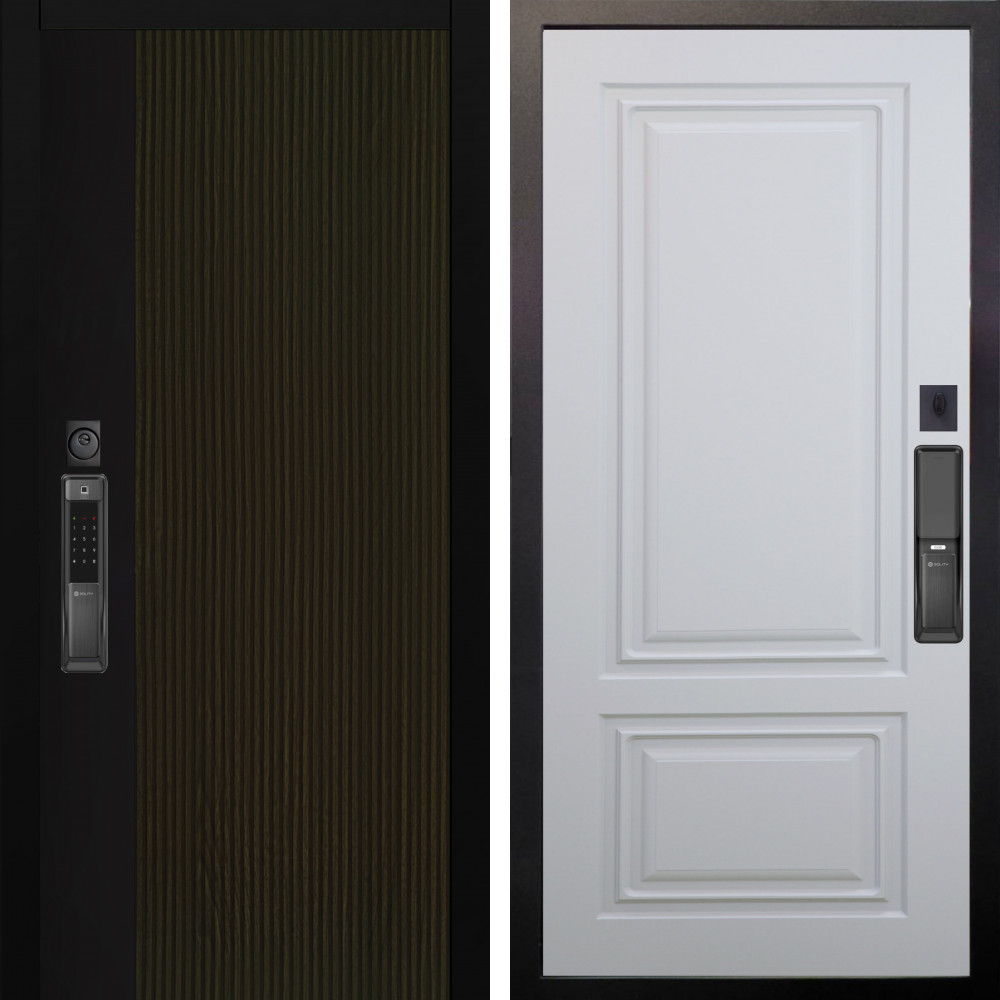 Входная дверь Termo-Door с терморазрывом и утеплением: внешняя отделка Премиум Винорит Вертикаль Grey, внутренняя отделка Марсель Белый софт.Толщина полотна 95 мм, цилиндровый замок, доставка и установка в Москве и МО, гарантия 1 год.