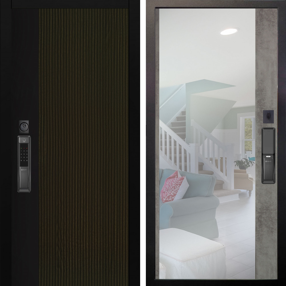 Входная дверь Престиж с стеклянной черной вставкой с внутренней отделкой Зеркало сандал белый • Габаритные размеры: 2050x860 мм, 2050x960 мм • Металл 1.5мм. • Внешнее покрытие: МДФ 12 мм. • Цвет покрытия: Розвуд. • Толщина полотна: 100 мм. • Толщина коробки: 105 мм. • Окрас короба:Черная шагрень. • Короб закрытого типа, утепленный. • Уплотнитель: 3 контура. • Два вертикальных ребра жесткости. • Замок основной: Guardian 3211 (цилиндровый). • Замок дополнительный: Guardian 300 • Врезная броненакладка. • Независимая задвижка есть. • Фурнитура Черная.