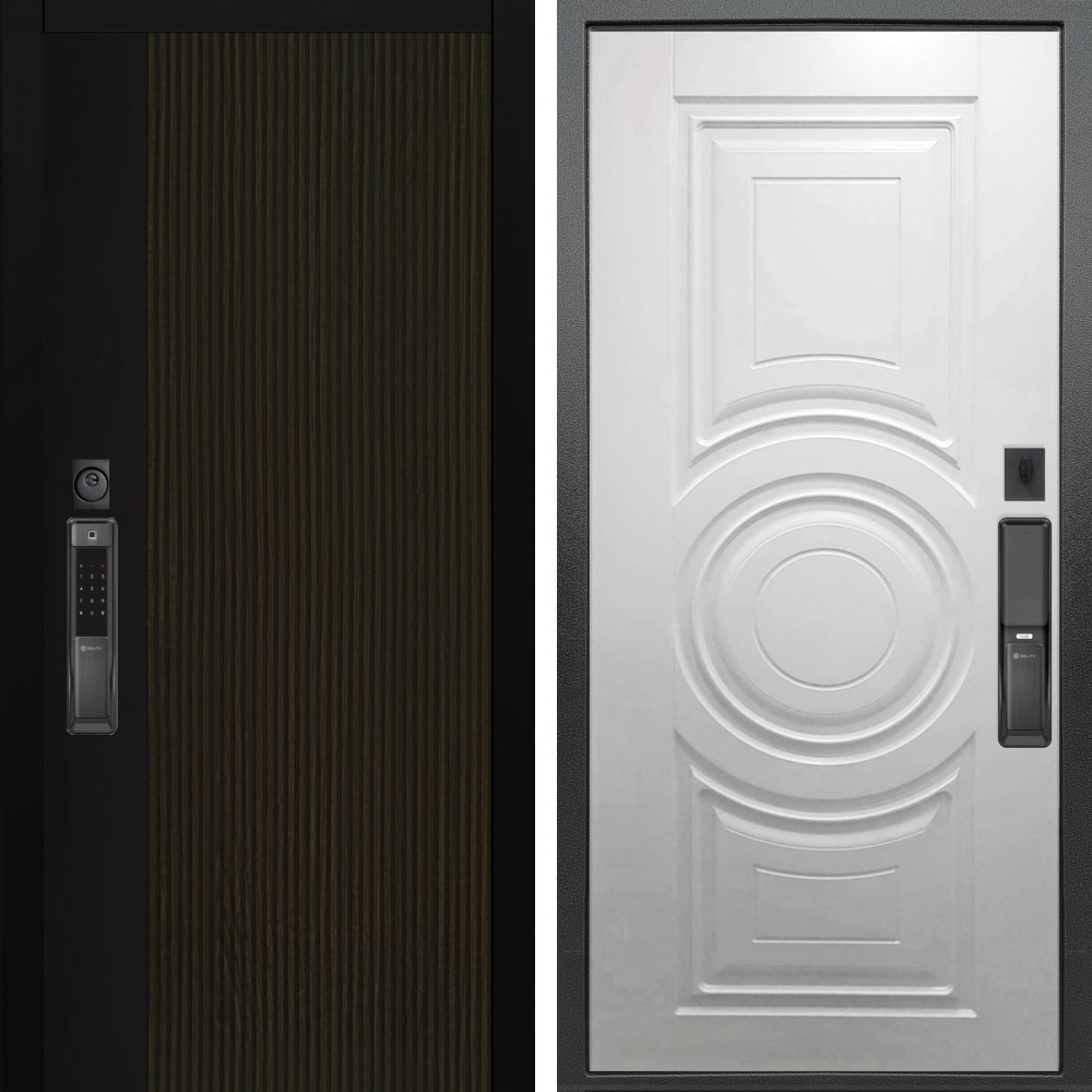 Входная дверь Вертика с внутренней отделкой Агата • Габаритные размеры: 2050x860 мм, 2050x960 мм • Металл 1.8мм • Внешнее покрытие: МДФ 16 мм белый мат с молдингом черная лакобель • Толщина полотна: 115 мм. • Толщина коробки: 120 мм. • Короб закрытого типа, утепленный • Уплотнитель: 3 контура • Два вертикальных ребра жесткости • Замок основной: Гардиан 6211 с блокировкой язычка • Замок дополнительный: Гардиан 6001 • Врезная броненакладка • Пазы на коробке под доборы • Независимая задвижка есть • Фурнитура Черная
