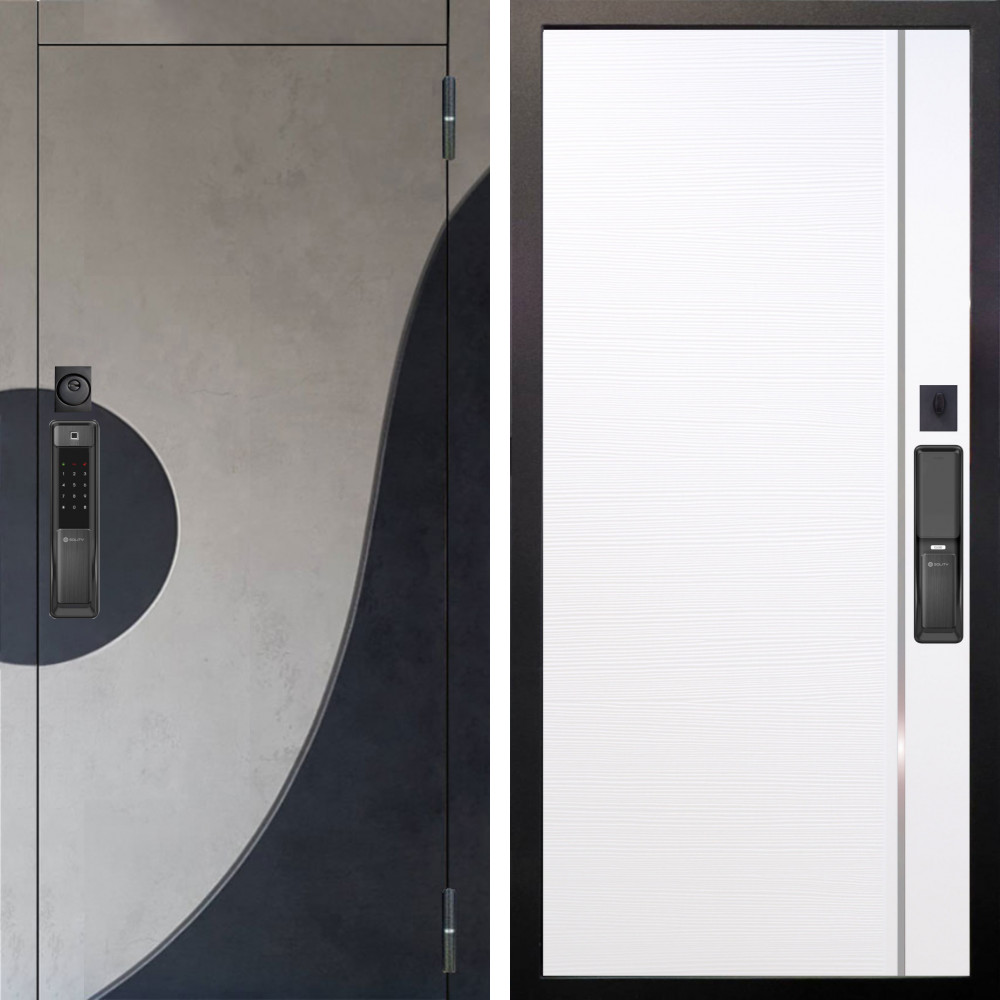 Входная дверь Аргус SMART Стен Бетон урбан милк вставка бетон урбан индиго + Гауда Роял вуд белый