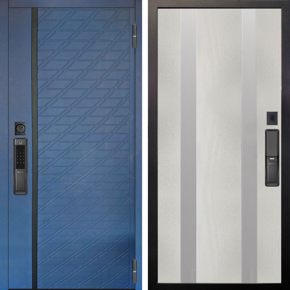 Входная дверь Аргус SMART Тори Синий софт + Дуэт Белое дерево вставки Изабель