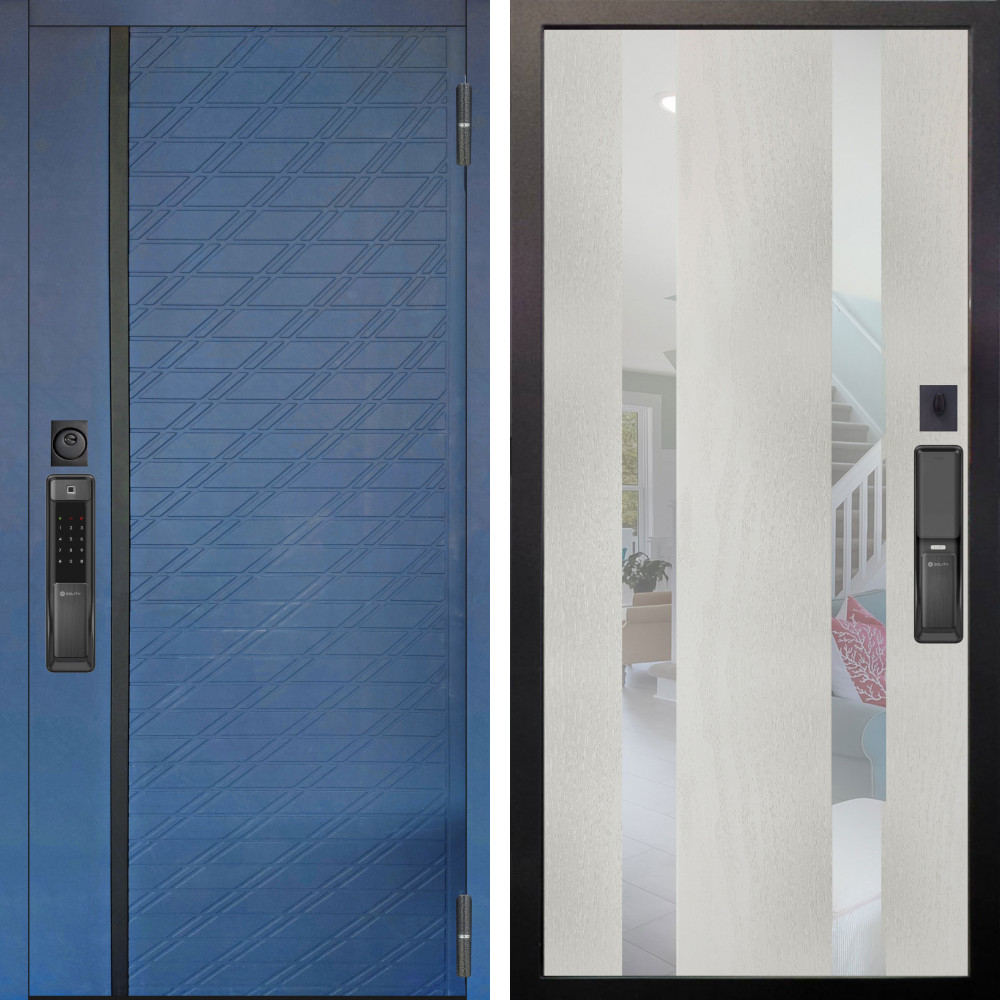 Входная дверь Аргус SMART Тори Синий софт + Дуэт Белое дерево вставки Николь