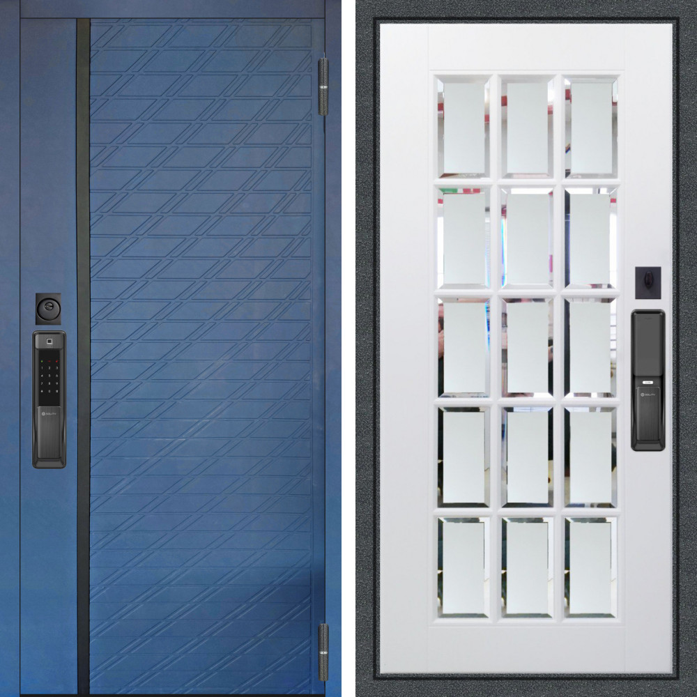 Входная дверь Аргус SMART Тори Синий софт + Мэрелин Софт милк зеркало с фацетом и пескоструем
