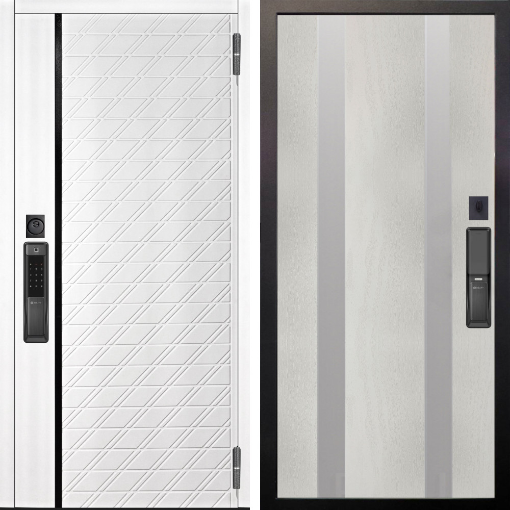 Входная дверь Аргус SMART Тори Софт милк + Дуэт Белое дерево вставки Изабель