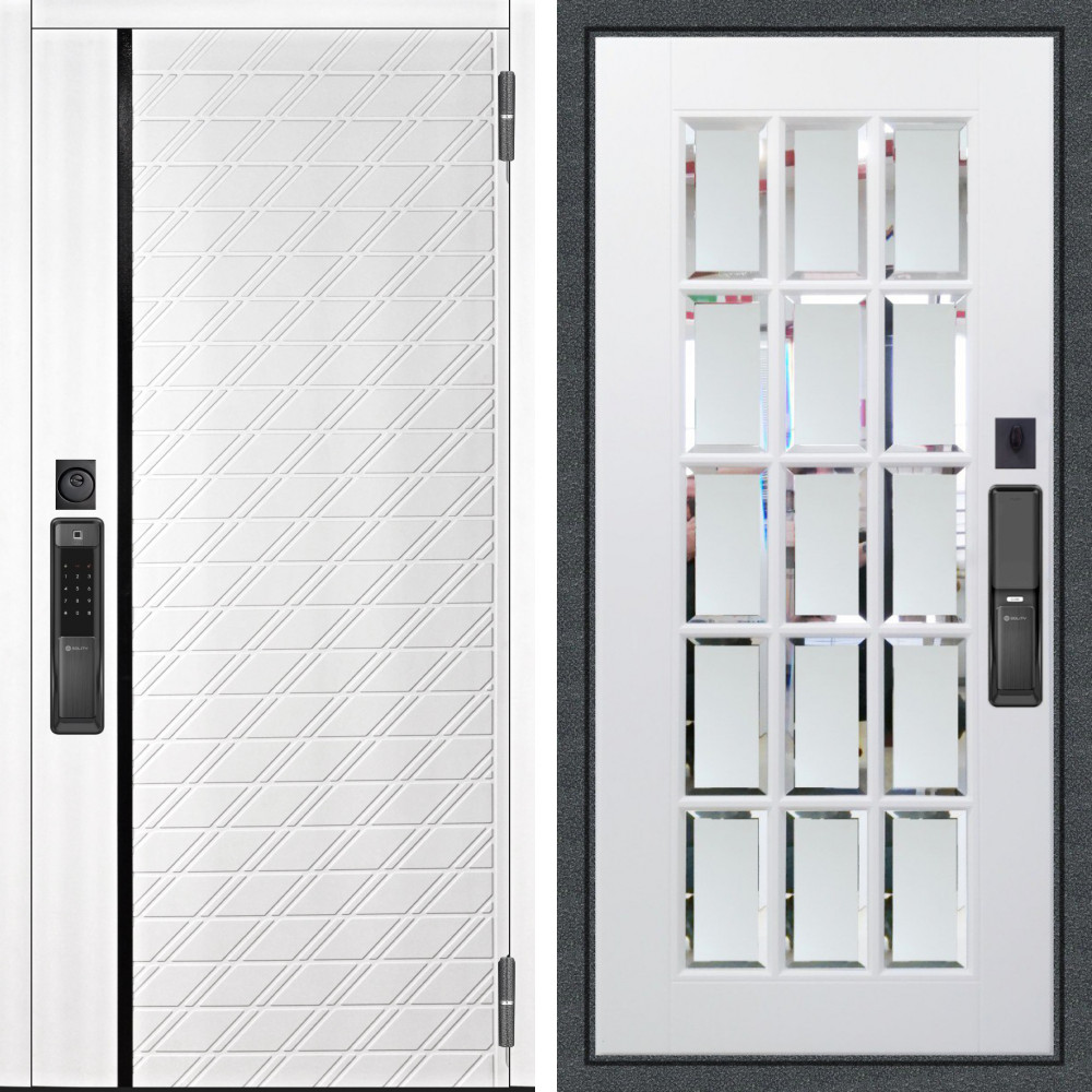 Входная дверь Аргус SMART Тори Софт милк + Мэрелин Софт милк зеркало с фацетом и пескоструем