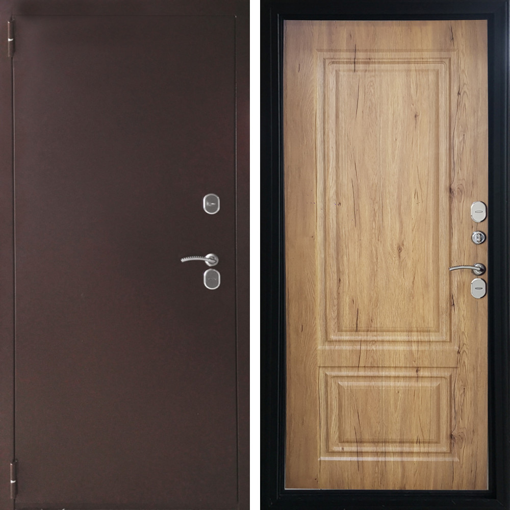 Входная дверь Termo-Door с терморазрывом и утеплением: внешняя отделка Премиум Орегон Дуб, внутренняя отделка Спарта лиственница.Толщина полотна 95 мм, цилиндровый замок, доставка и установка в Москве и МО, гарантия 1 год.
