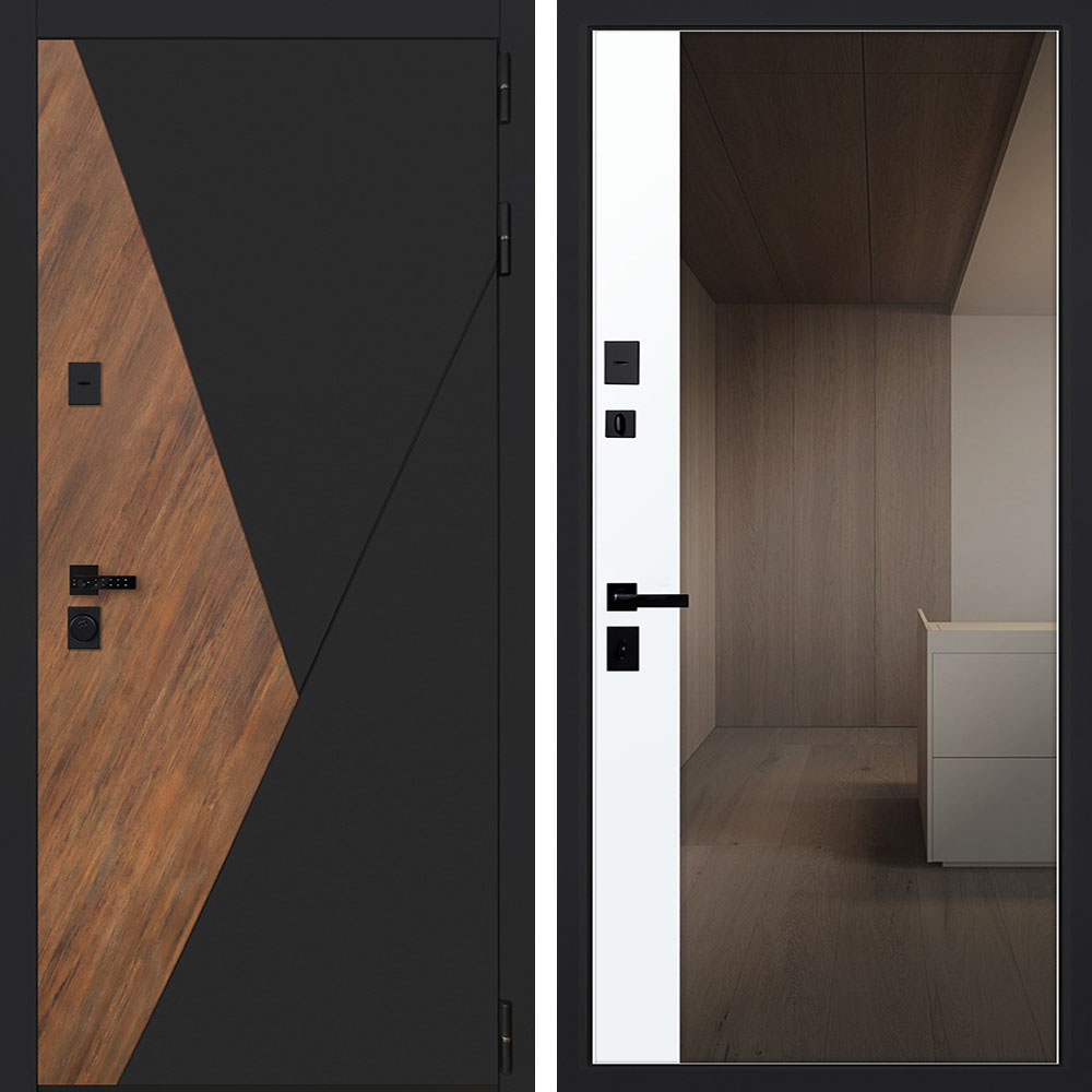Входная дверь АСД Plata с зеркалом с отпечатком пальца Smart lock T888 Черная