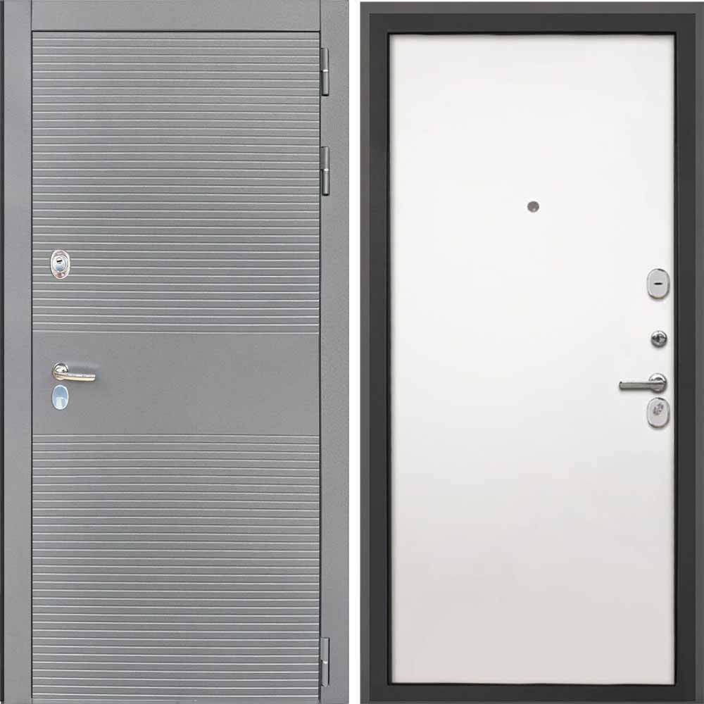 Входная дверь Интекрон Брайтон антрацит Силк Сноу гладкая (белая)