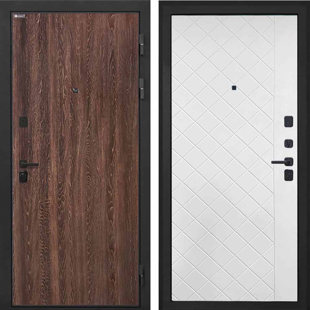 Входная дверь Интекрон Профит Black Дуб филадельфия коньяк ФЛ-Ромбы Силк ясень белый