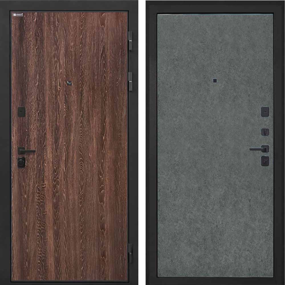Входная дверь Интекрон Профит Black Дуб филадельфия коньяк Штукатурка графит гладкая