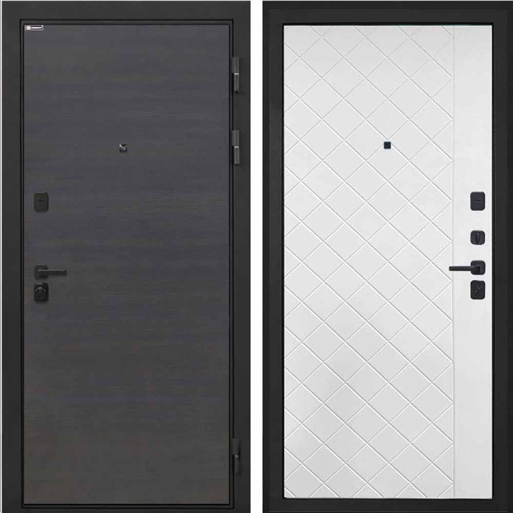 Входная дверь Интекрон Профит Black Эковенге поперечный ФЛ-Ромбы Силк ясень белый