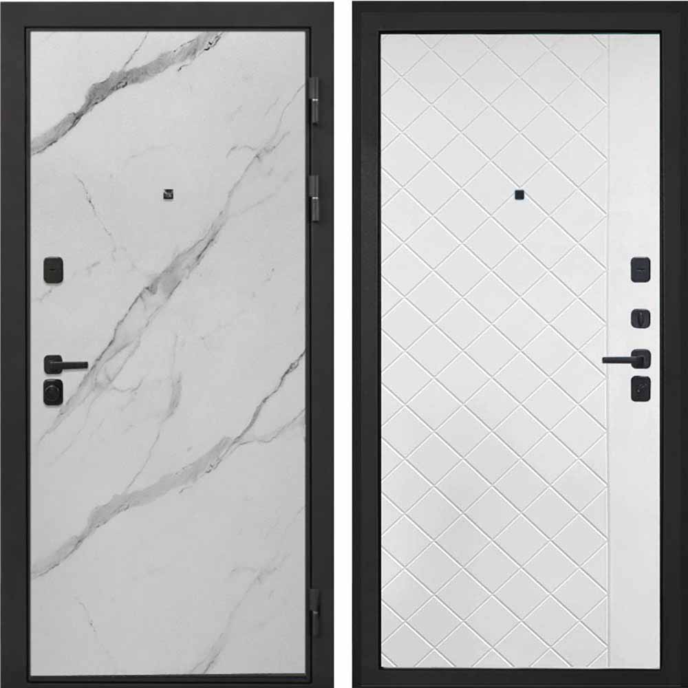 Входная дверь Интекрон Профит black мрамор арктик ФЛ-Ромбы Силк ясень белый