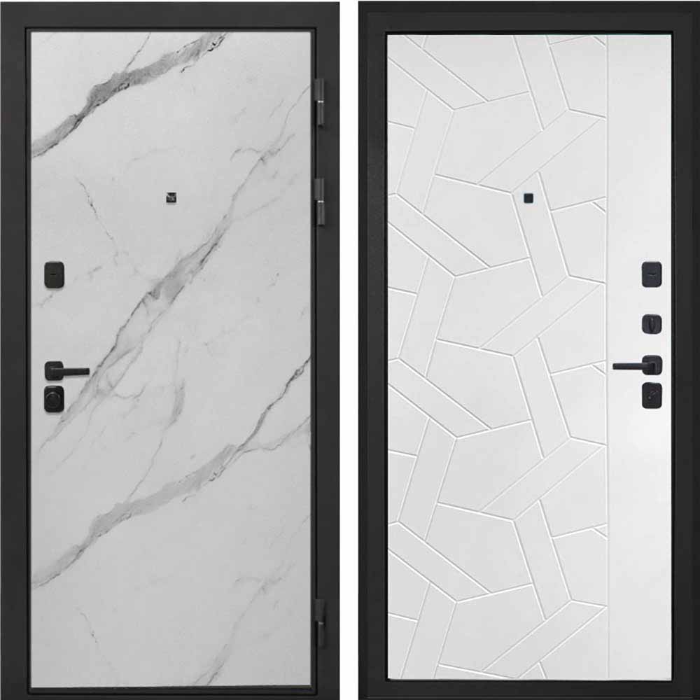 Входная дверь Интекрон Профит black мрамор арктик Ясень силк белый ФЛ-306