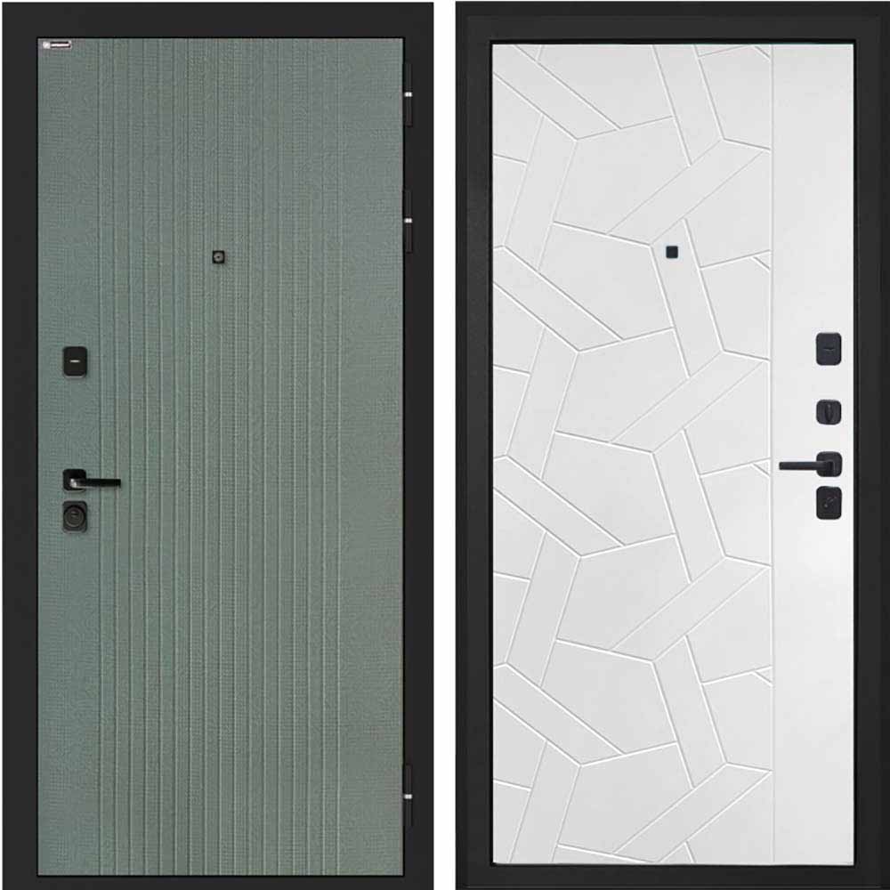 Входная дверь Интекрон Профит Black Пазл грин ФЛ-295 Ясень силк белый ФЛ-306
