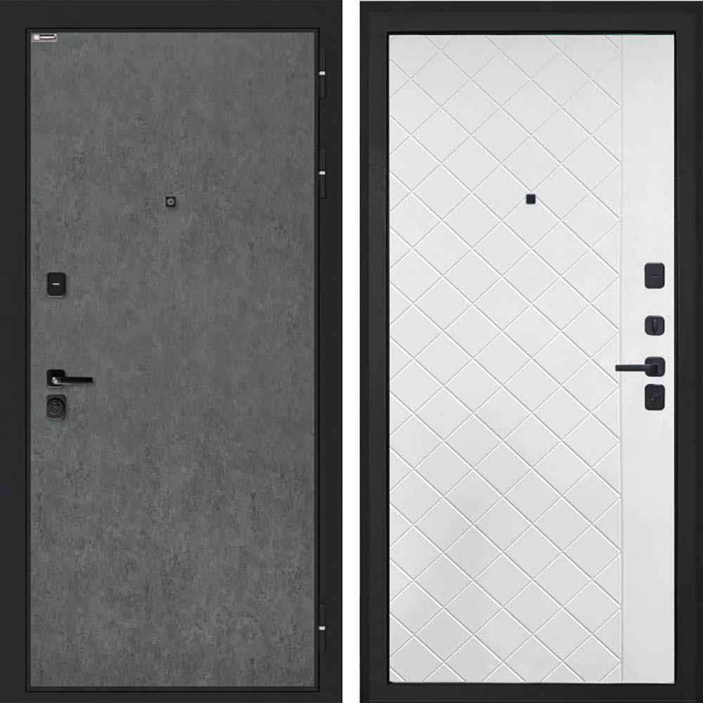 Входная дверь Интекрон Профит Black ФЛ-613 эмаль черная ФЛ-Ромбы Силк ясень белый