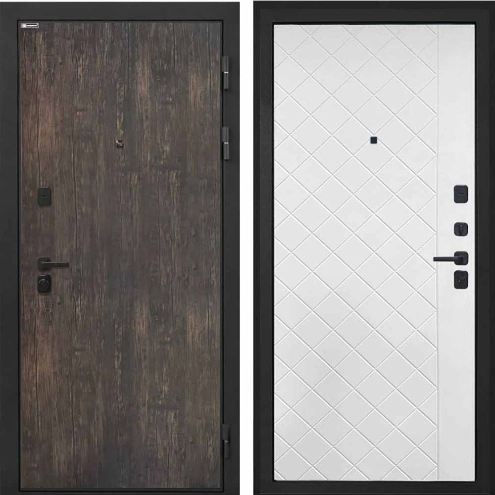 Входная дверь Интекрон Профит Black Тиковое дерево ФЛ-Ромбы Силк ясень белый