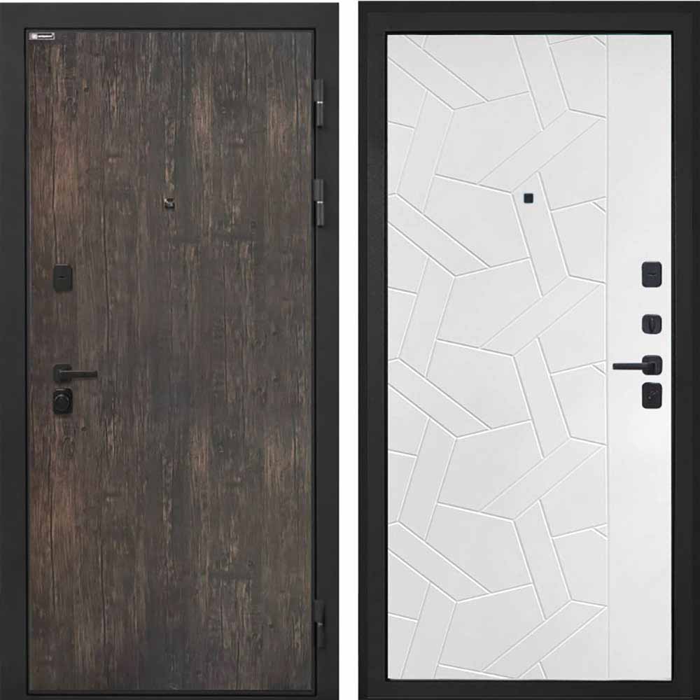 Входная дверь Интекрон Профит Black Тиковое дерево Ясень силк белый ФЛ-306