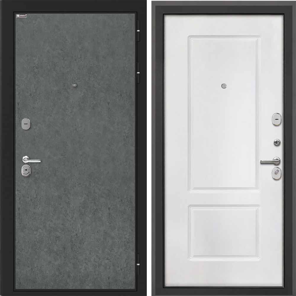 Входная дверь Интекрон Сицилия Remix Штукатурка графит Белая матовая КВ-2