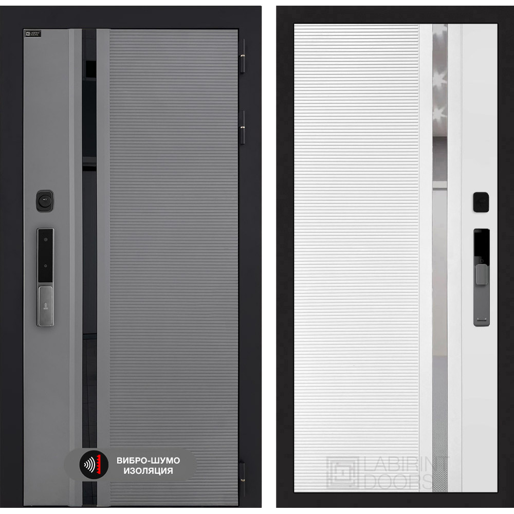 Входная дверь Лабиринт Пиано Смарт 2.0 31 - Белый софт, зеркальная вставка с тонировкой