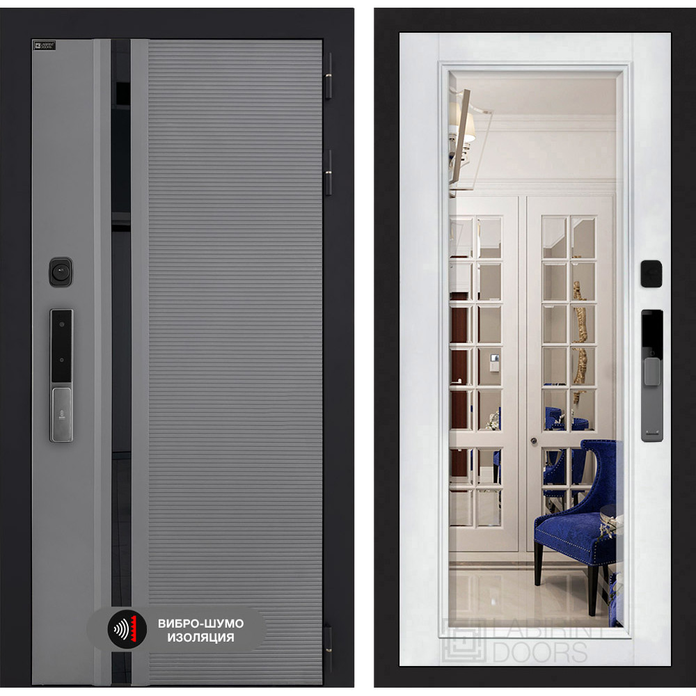 Входная дверь Лабиринт Пиано Смарт 2.0 с Зеркалом Фацет - Белый софт
