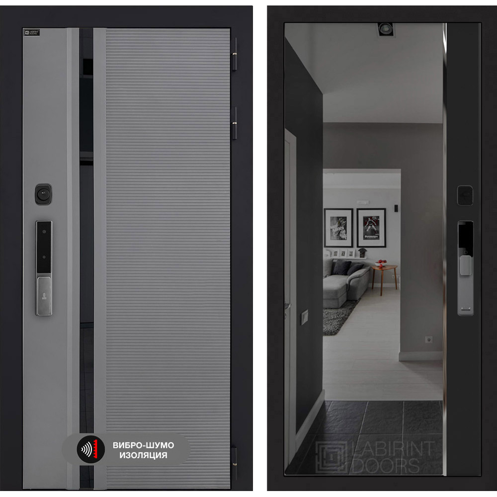 Входная дверь Лабиринт Пиано Смарт 2.0 с зеркалом Панорама с тонировкой - Черный кварц