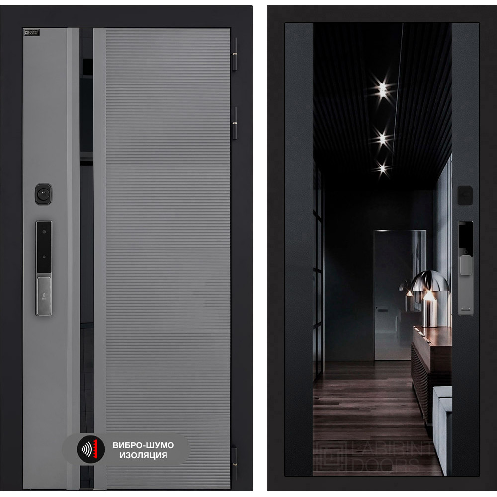 Входная дверь Лабиринт Пиано Смарт 2.0 с Зеркалом тонированным Максимум - Черный кварц
