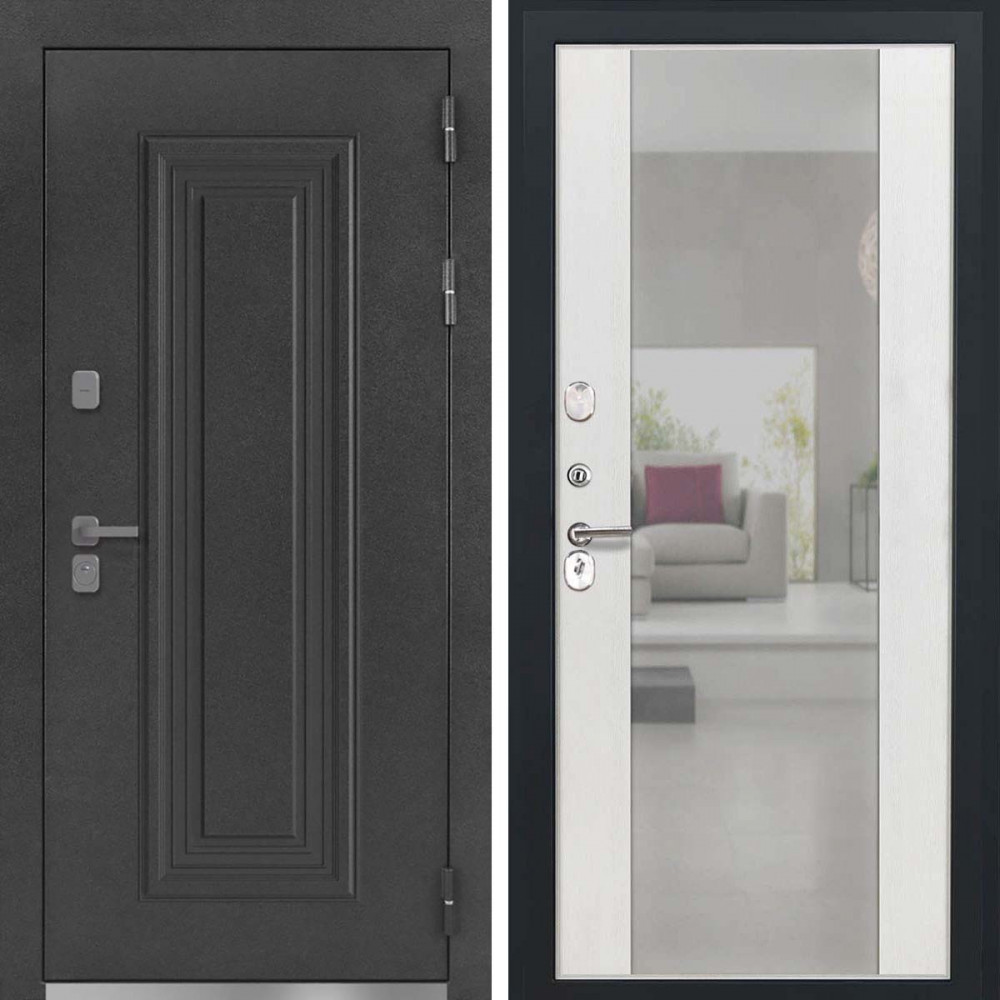 Входная дверь L-Дарион с терморазрывом Алиса ясень белый зеркало
