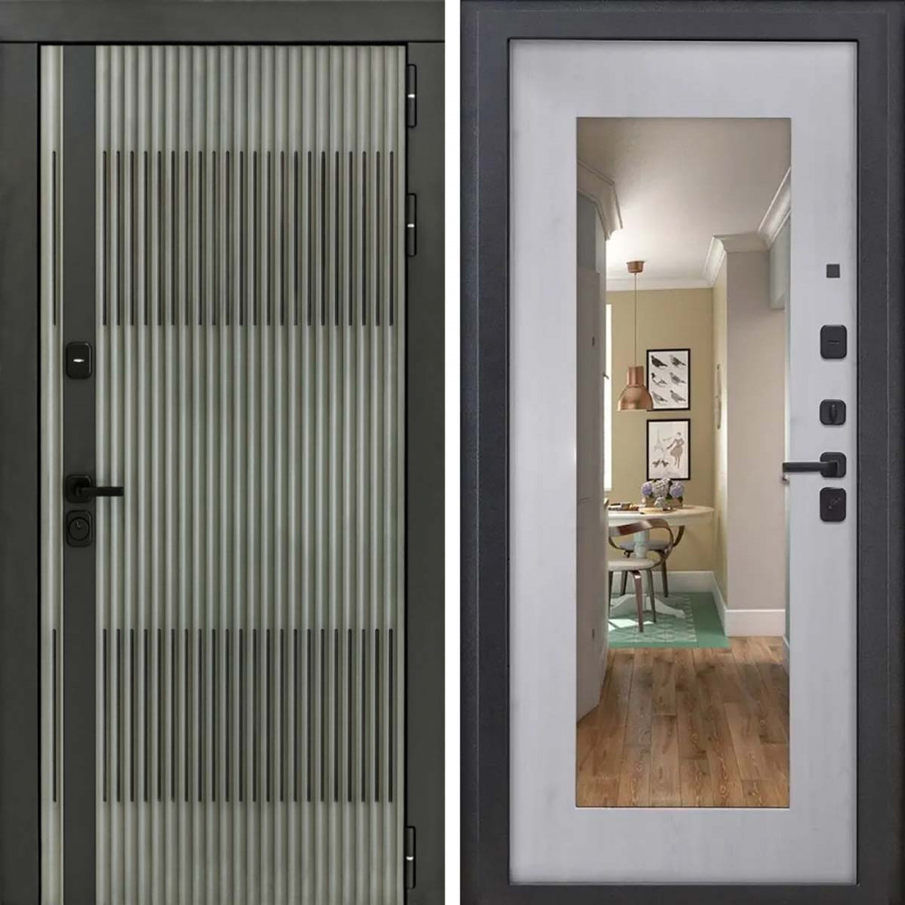 Входная дверь Бульдорс TRUST MASS МР Черный муар металлик D-4/Белый софт 9S-140, зеркало