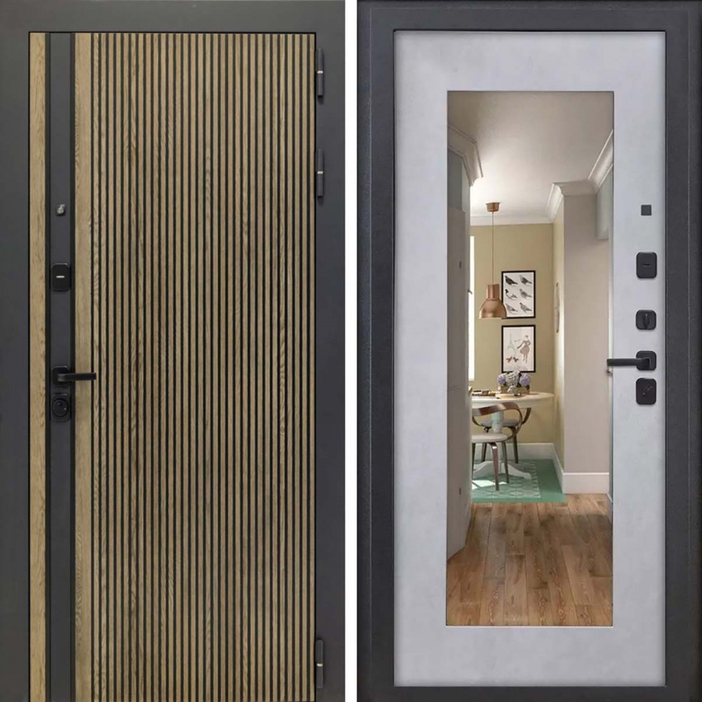 Входная дверь • Габаритные размеры: 2050x860 мм, 2050x960 мм • Металл 1.8мм • Внешнее покрытие: МДФ 16 мм. • Толщина полотна: 115 мм. • Толщина коробки: 120 мм. • Короб закрытого типа, утепленный • Уплотнитель: 3 контура • Два вертикальных ребра жесткости • Замок основной: Гардиан 6211 с блокировкой язычка • Замок дополнительный: Гардиан 6001 • Врезная броненакладка • Пазы на коробке под доборы • Независимая задвижка есть • Фурнитура ХРОМ