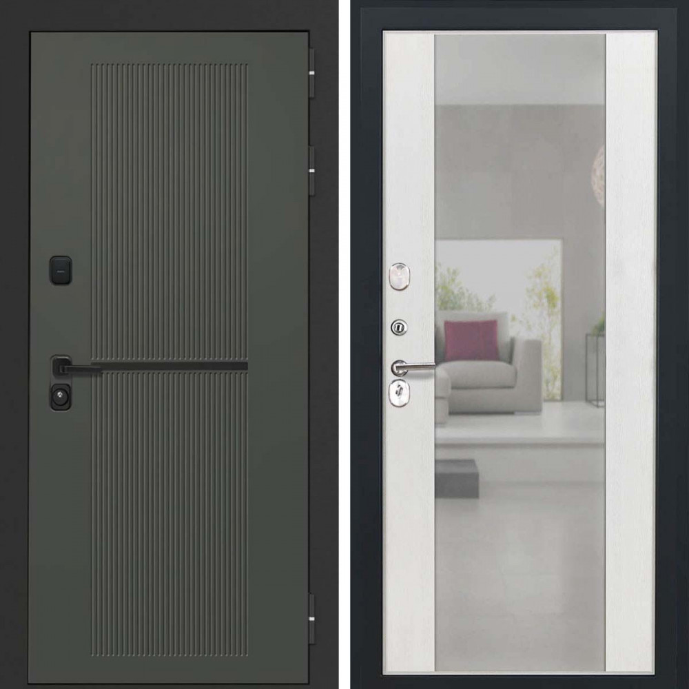 Входная дверь L-Terio-2 Алиса ясень белый зеркало