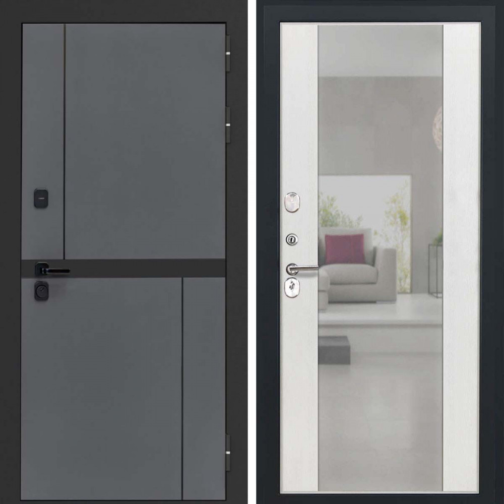 Входная дверь Верона Графит + Зеркало бетон светлый