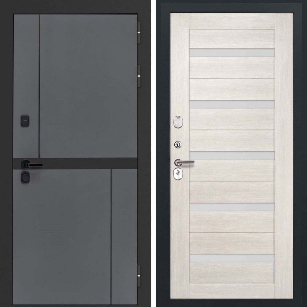 Входная дверь L-Terio СБ-1 беленый дуб экошпон стекло белое