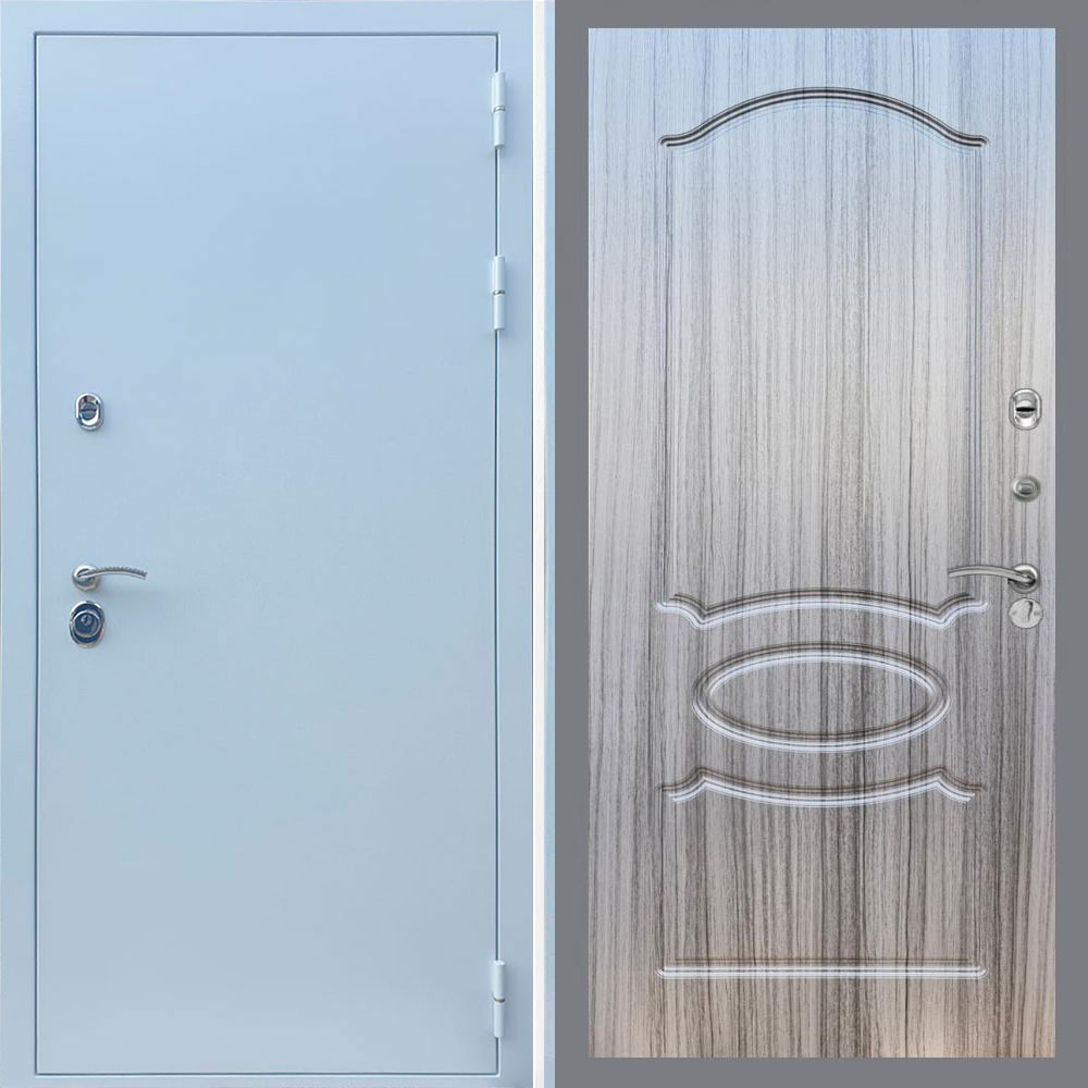 Входная дверь REX (Рекс) 5 антик белый серебро ФЛ-128 Сандал серый